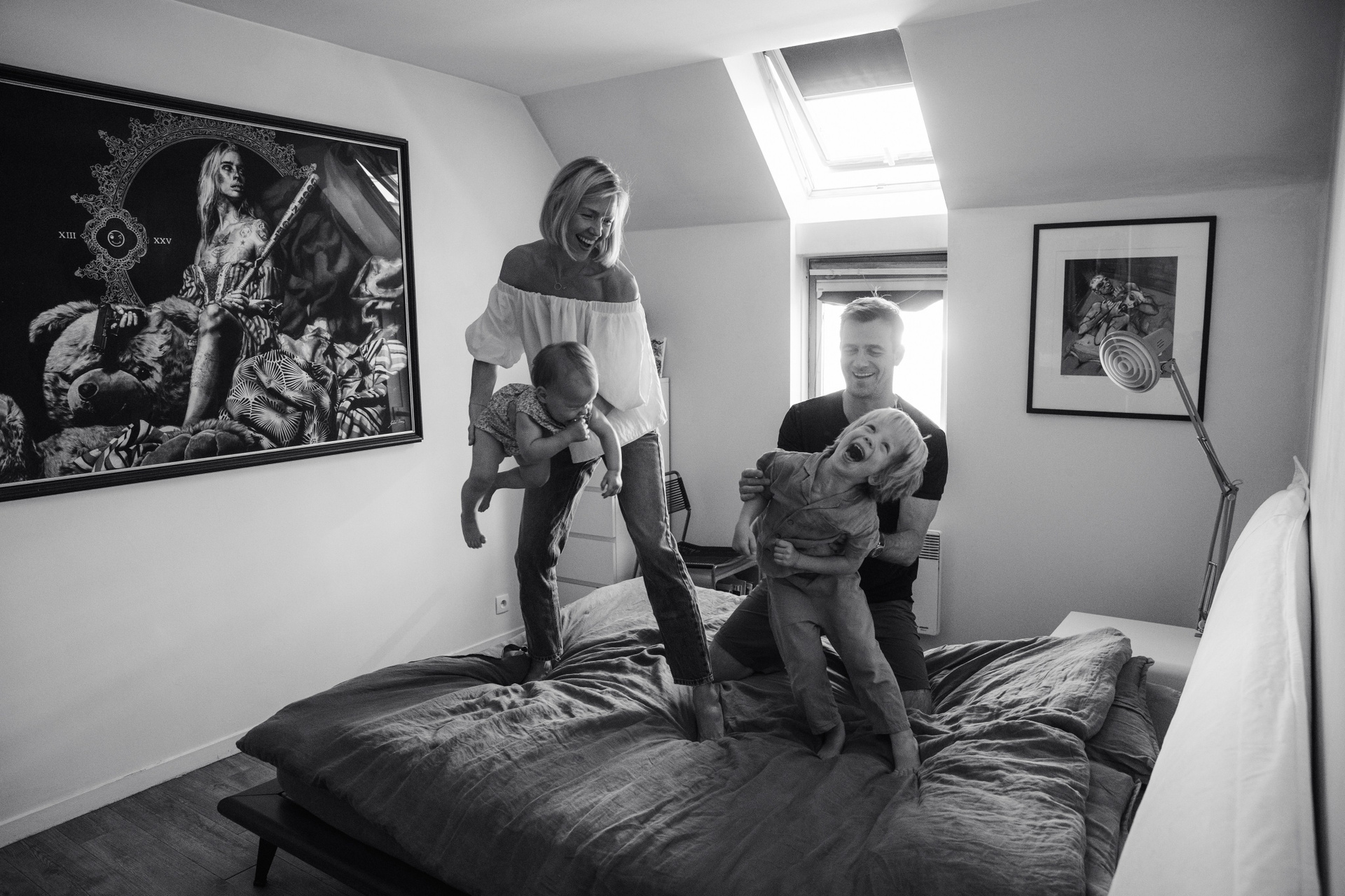 This family photoshoot at home in Paris captures everyday life with young children — laughter, movement and quiet moments shared together. The result is a collection of warm photographs that reflect the real atmosphere of family life.