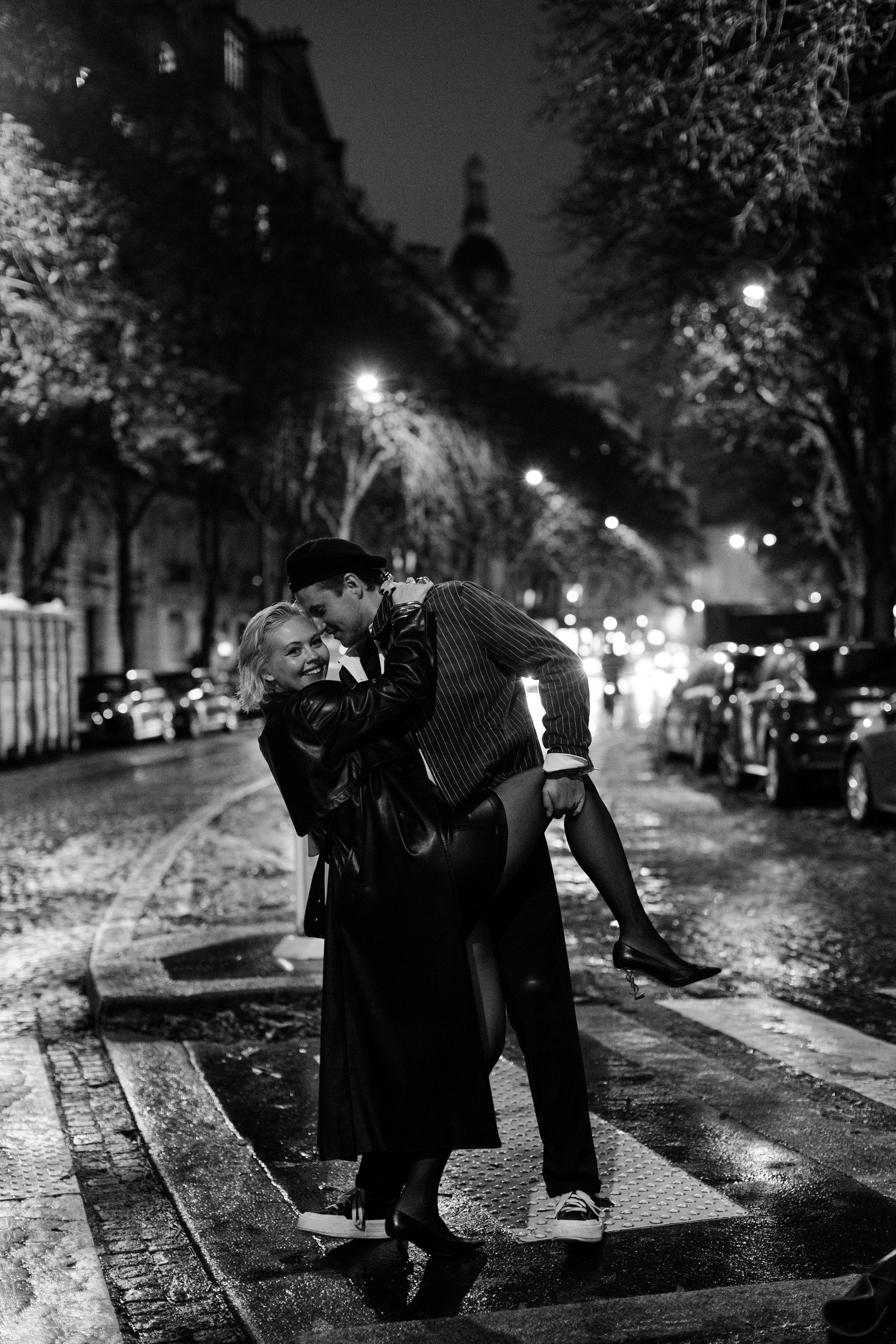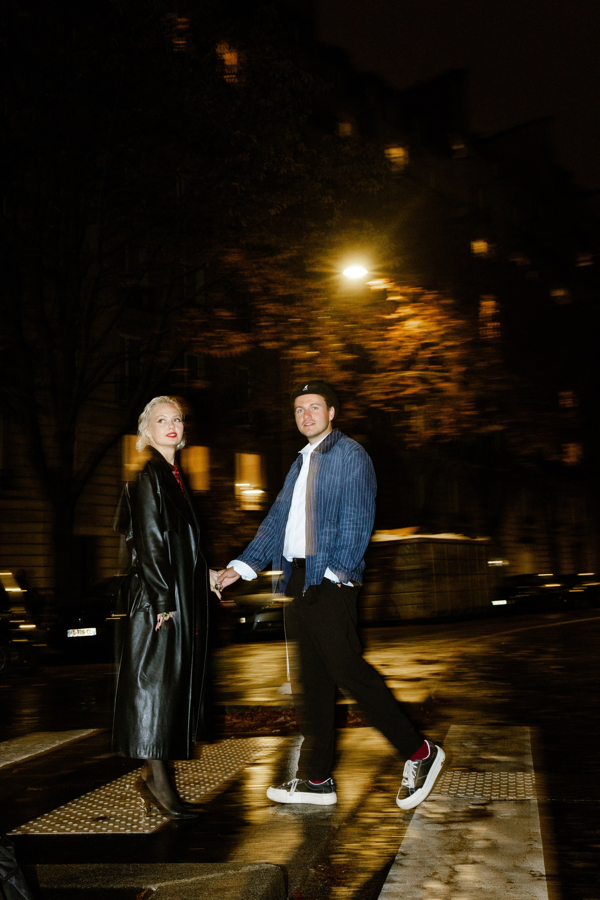 Their couple session moves through the streets of Paris from daylight into the evening, capturing movement, emotion and the dynamic spirit of the city. The glow of the lights and the rhythm of Paris create a striking backdrop for expressive and stylish portraits.